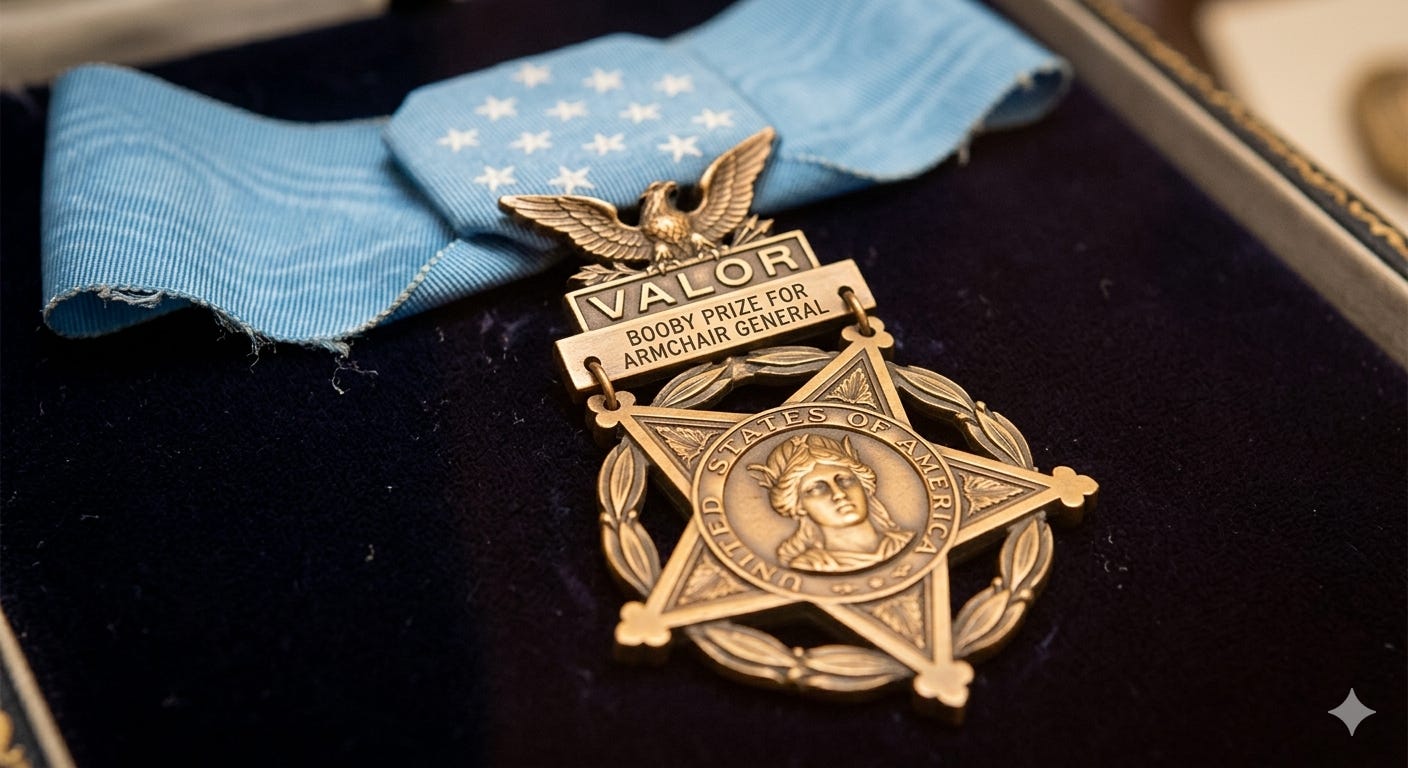 “For ignoring basic mathematics and modern engineering, for steadfast commitment to the military technology of 1944 combined with an impressive display of sneering ignorance, for services to obsolete logic and ballistics, and for demonstrating a tactical awareness best suited for Antiques Roadshow, I hereby award you the Congressional Booby Prize for Armchair Generalship.”3