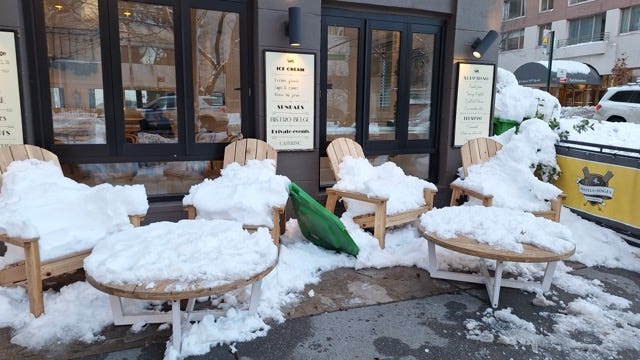 Snowed under but the sidewalk was clear.