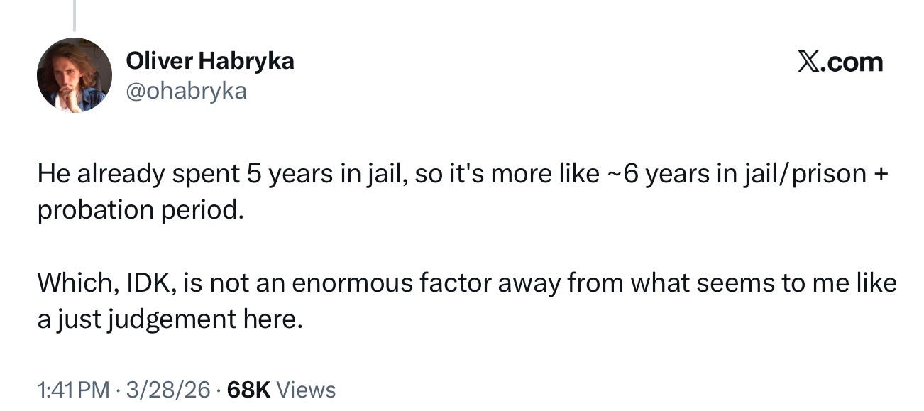 I don’t like “kirkslammer88” - the “88” is an obvious neo-Nazi reveal: “Heil Hitler,” as the rest of his X account reveals. (I don’t recommend looking at it.) He was not making an objectively logical statement, but he was making a subjectively correct judgement, which I think is on the nose. I had to credit him to alert you what’s going on.